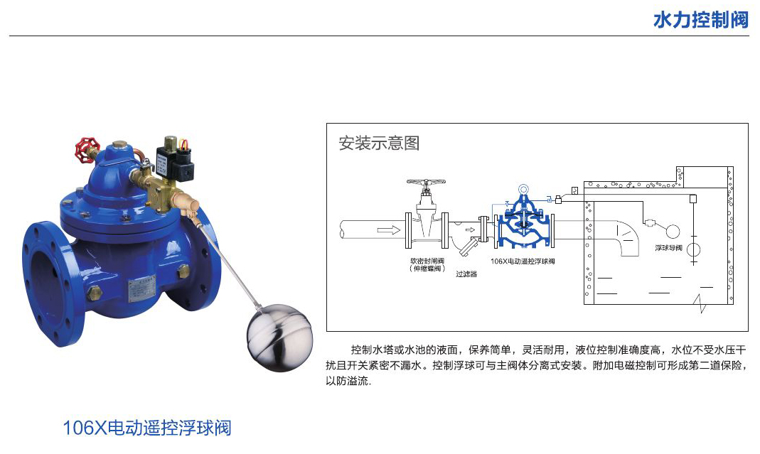 - 控制水塔或水池的液面,保養(yǎng)簡單,靈活耐用,液位控制準確度高,水位不受水壓干擾且開關緊密不漏水。