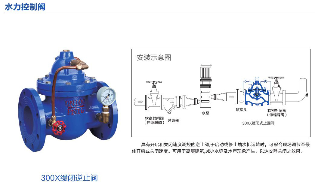 - 具有開啟和關(guān)閉速度調(diào)控的逆止閥,于啟動(dòng)或停止抽水機(jī)運(yùn)轉(zhuǎn)時(shí),可配合現(xiàn)場(chǎng)調(diào)節(jié)至開啟或關(guān)閉速度。
