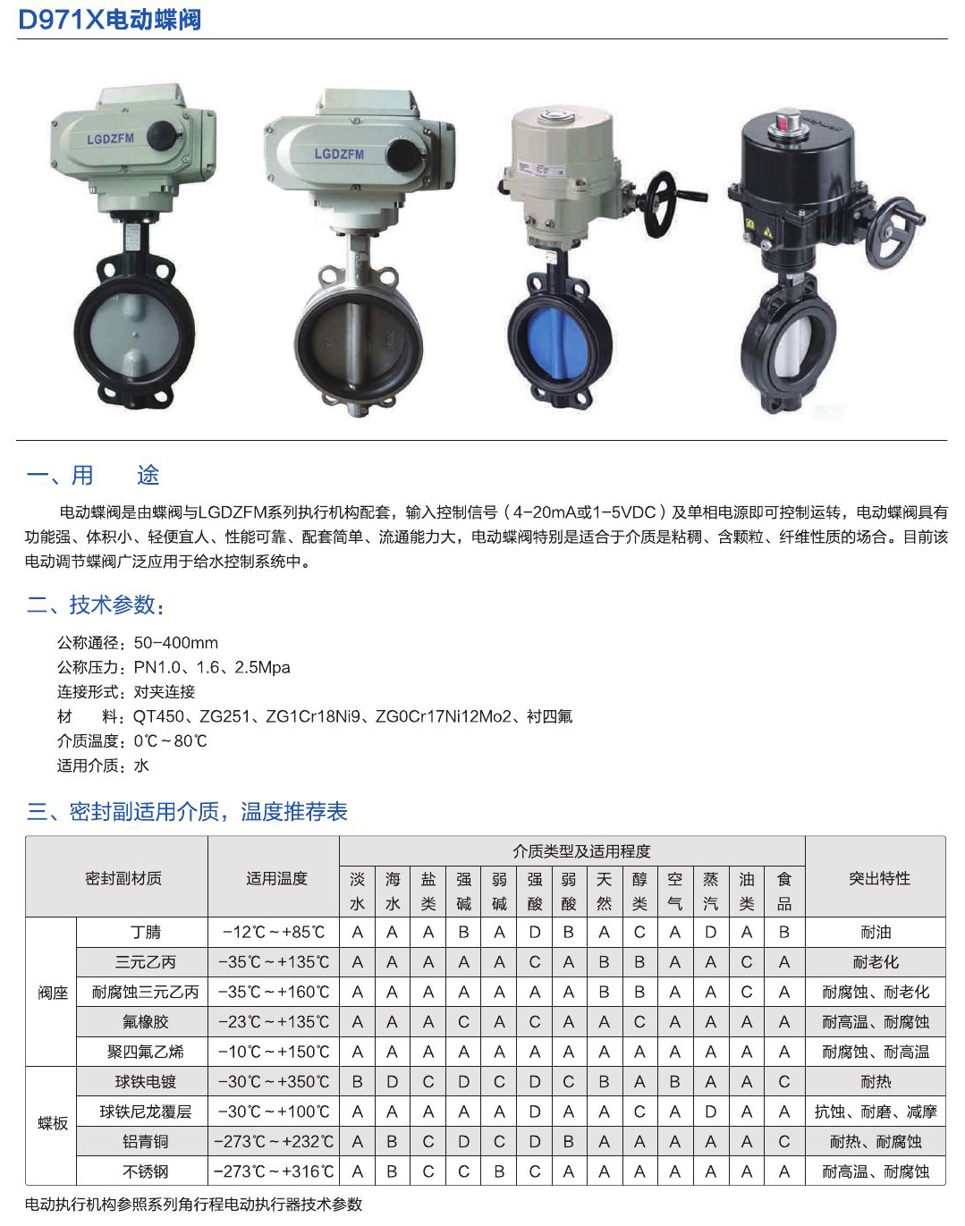 - 電動蝶閥是由蝶閥與LGDZFM系統(tǒng)執(zhí)行機構配套,輸入控制信號(4-20mA或1-5VDC)及單相電源即可控制運轉(zhuǎn),電動蝶閥具有功能強、體積小、輕便宜人、性能可靠邊、配套簡單、流通通力大,電動蝶閥特別是適合于介質(zhì)是粘稠、含顆粒、纖維性質(zhì)的場合。