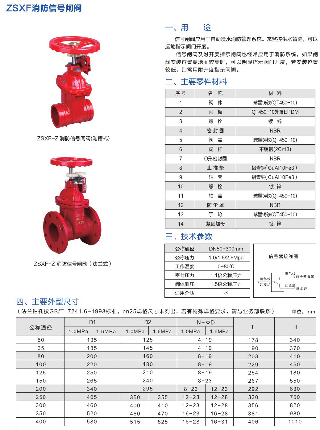 - 信號閘閥應用于自動噴水消防管理系統(tǒng)。來監(jiān)控供水管路,可以遠地指示閥門開度。