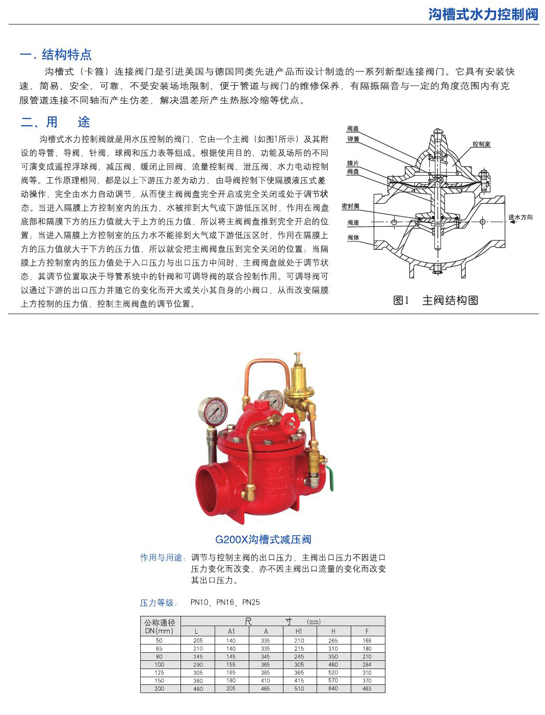 - 調(diào)節(jié)與控制主閥的出口壓力,主閥出口壓力不因進口壓力彎化而改變,亦不因主閥出口流量的變化而改變其出口壓力。