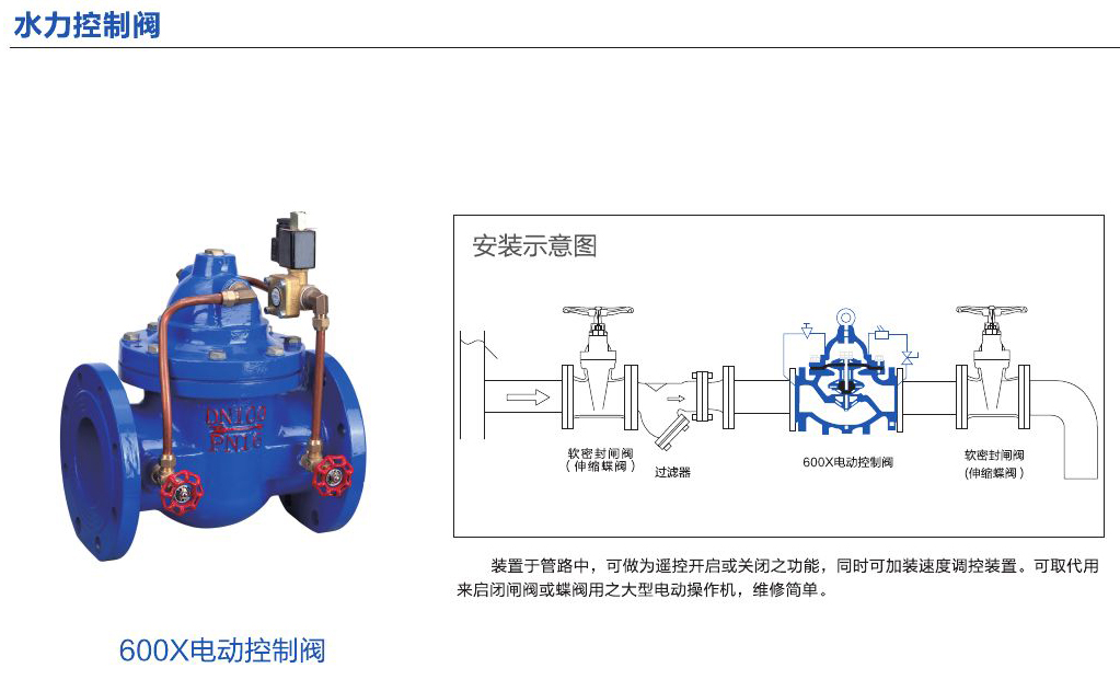 - 裝置于管路中,可做為遙控開啟或關(guān)閉之功能,同時可加裝速度調(diào)控裝置。