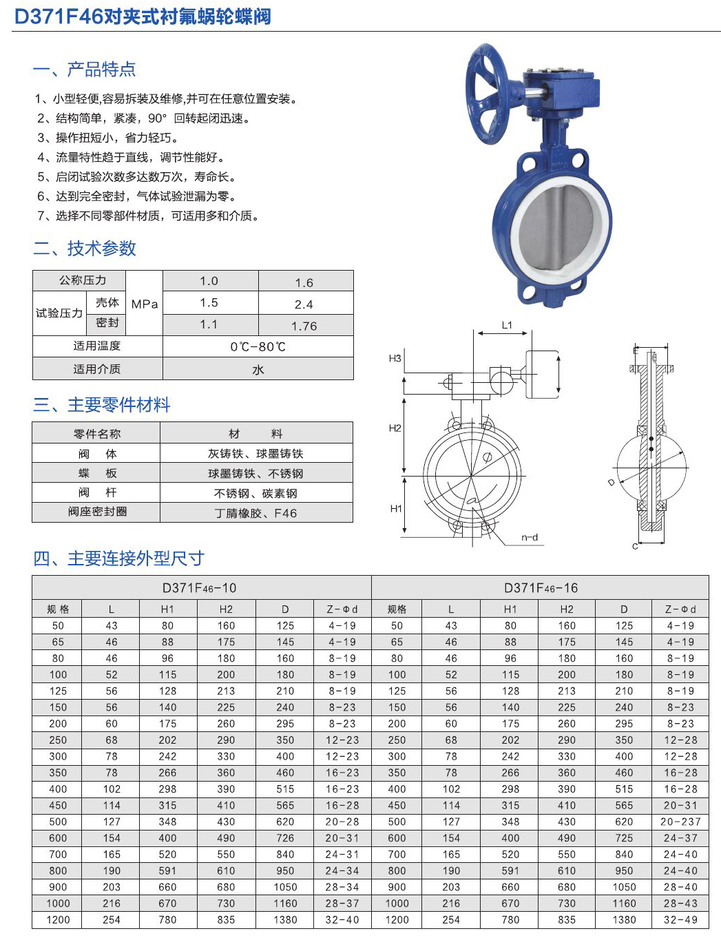 - 對夾式襯氟蝸輪蝶閥 D371F46