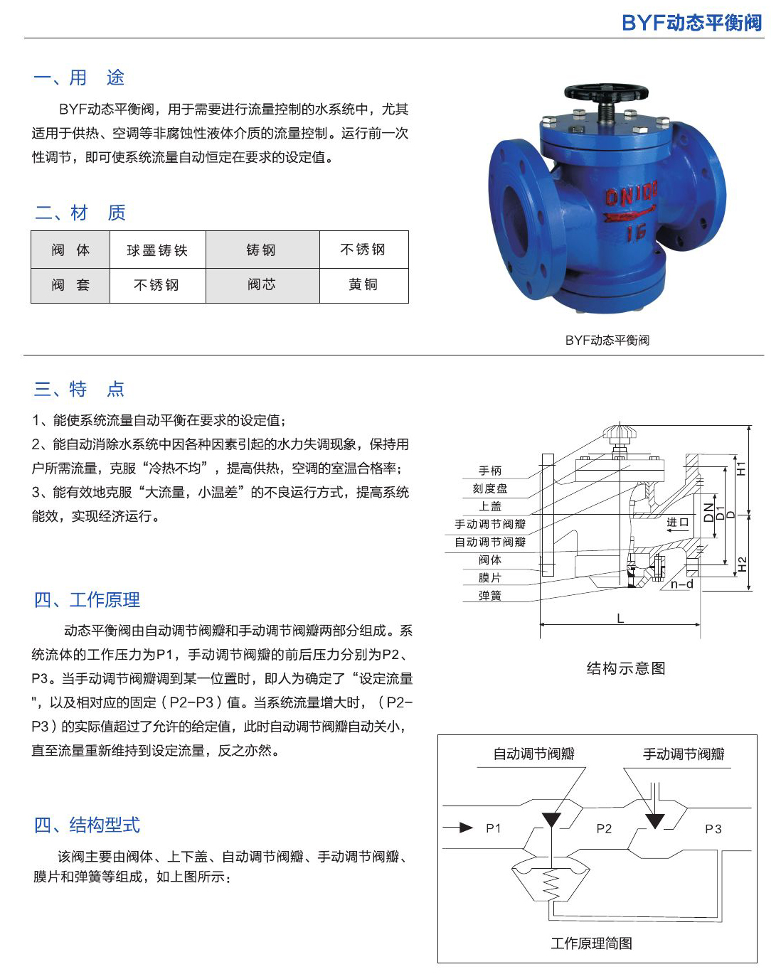 - BYF動態(tài)平衡閥,用于需要進行流量控制的水系統(tǒng)中,尤其適用于供熱、空調等非腐蝕性液體介質的流量控制。
