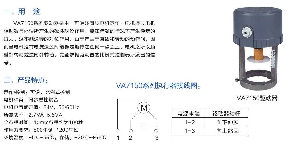 - VA7150系列驅(qū)動器是由一可逆轉(zhuǎn)同步電機(jī)運(yùn)作,電機(jī)通過電機(jī)轉(zhuǎn)動鼓與外軸所產(chǎn)生的磁性對位作用,能在停頓的情況下產(chǎn)生穩(wěn)定的扭力。